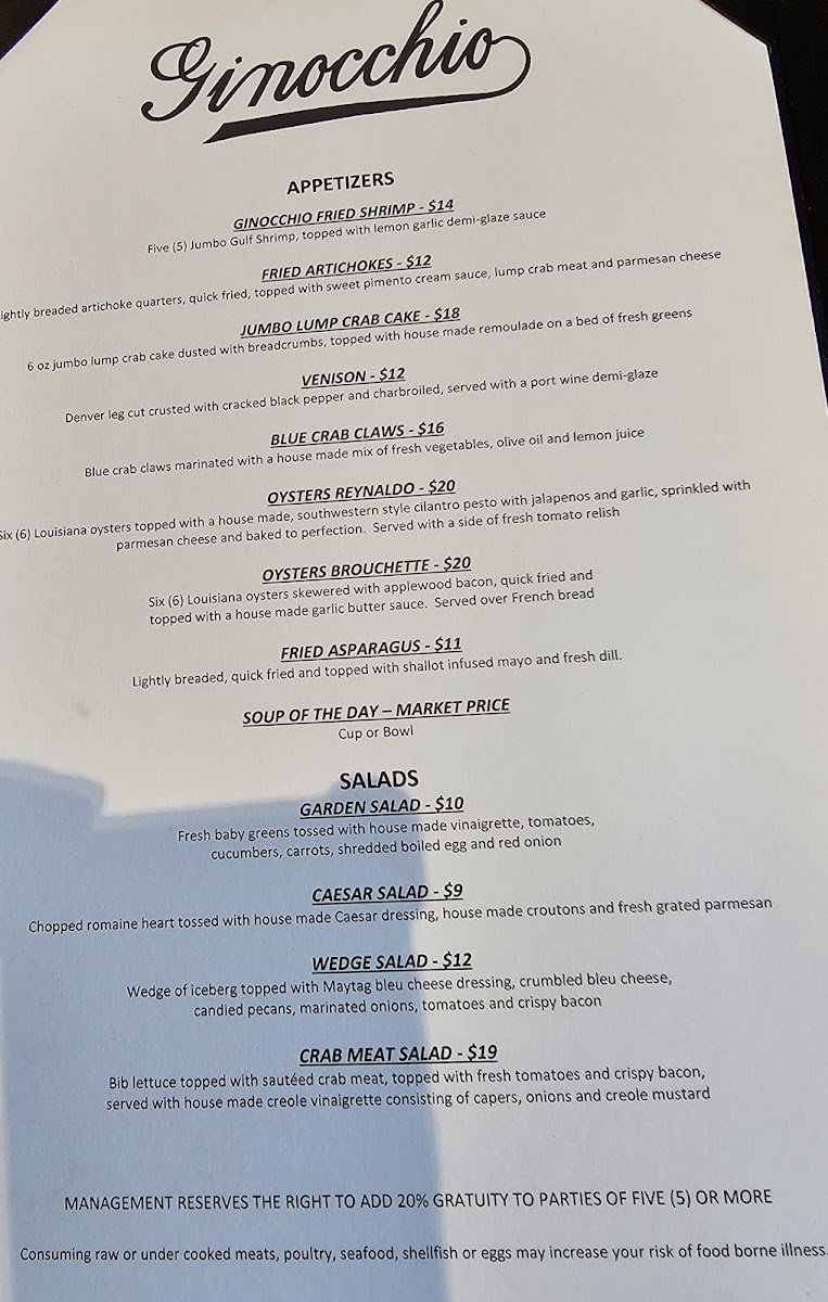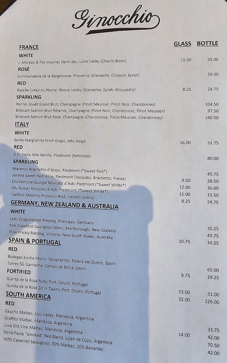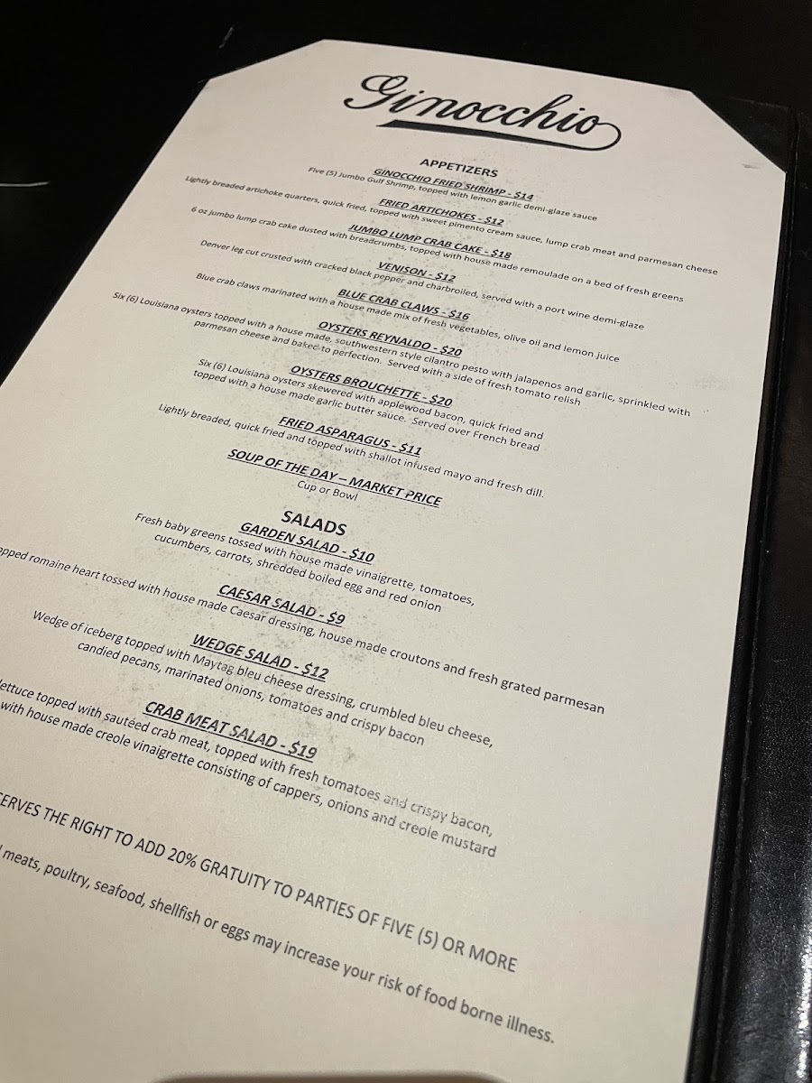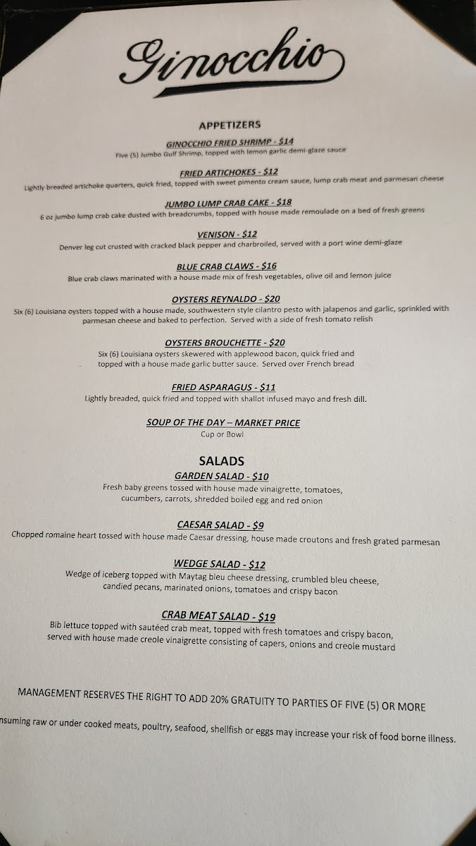 It’s not just about food here, though. The Ginocchio Menu also includes a range of drinks and desserts that take your dining experience to the next level. Every bite promises to be a treat, and the menu itself is a journey worth exploring.